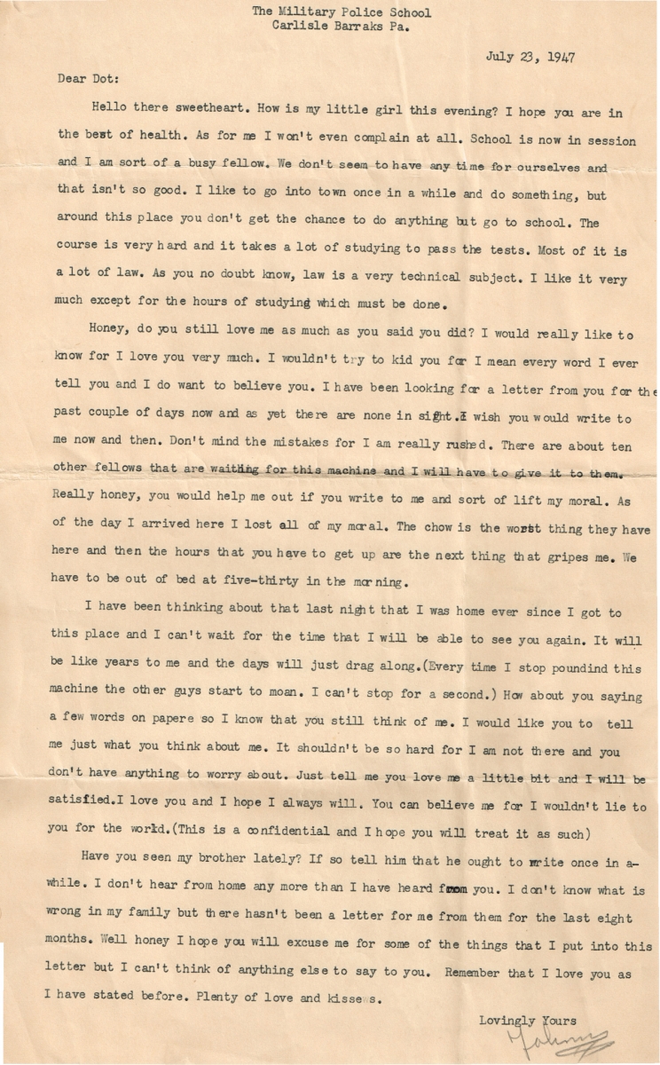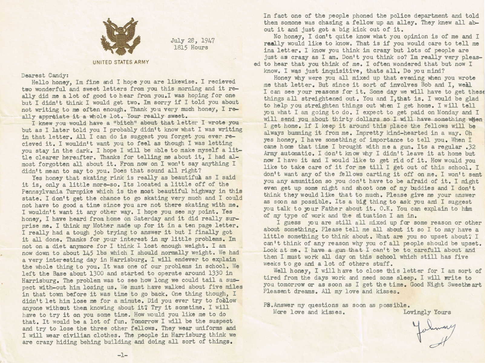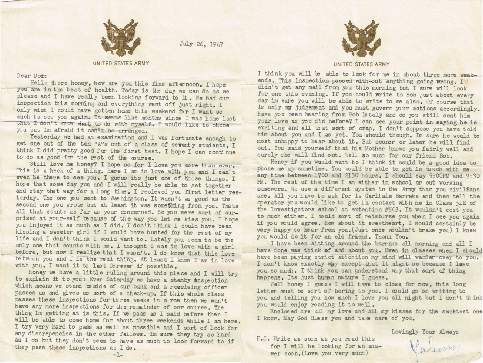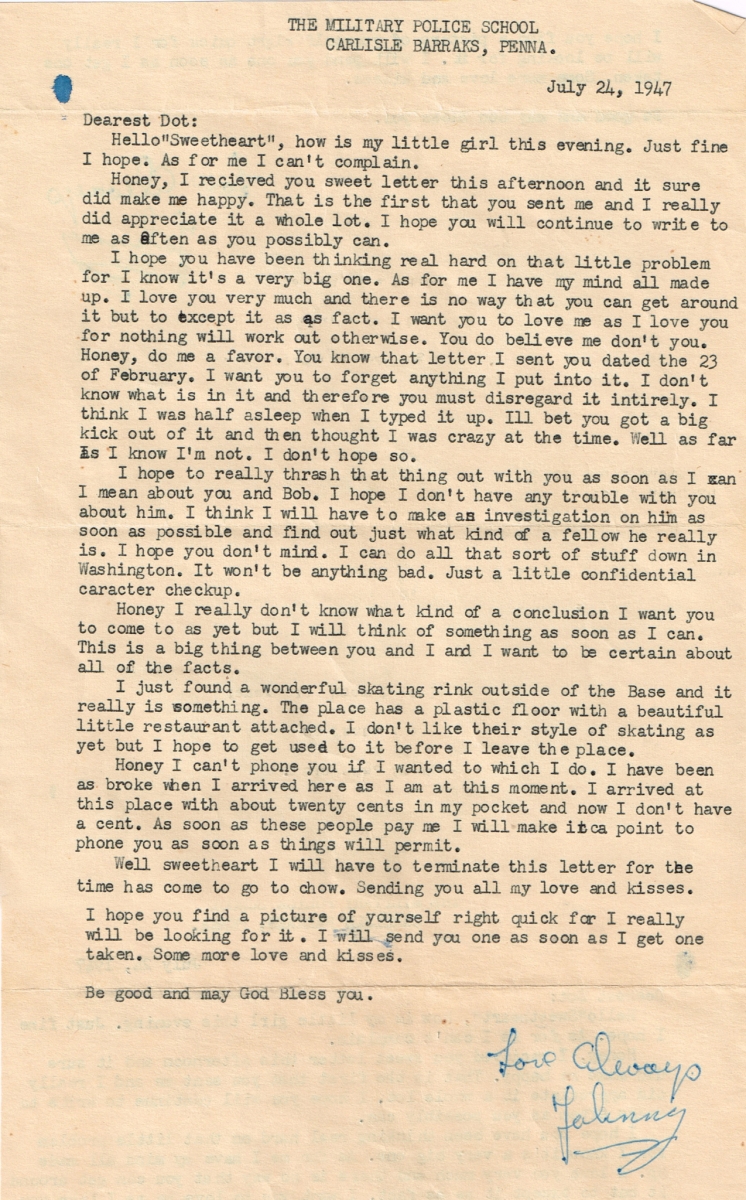 Letters Among the pile of old photo albums I found a trove of letters between Mom and Pop, written when he was in the service. Some of these are absolute gold. Pops Letters » Letters 47-07 Related Images: