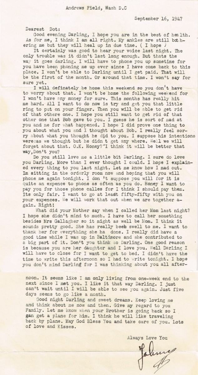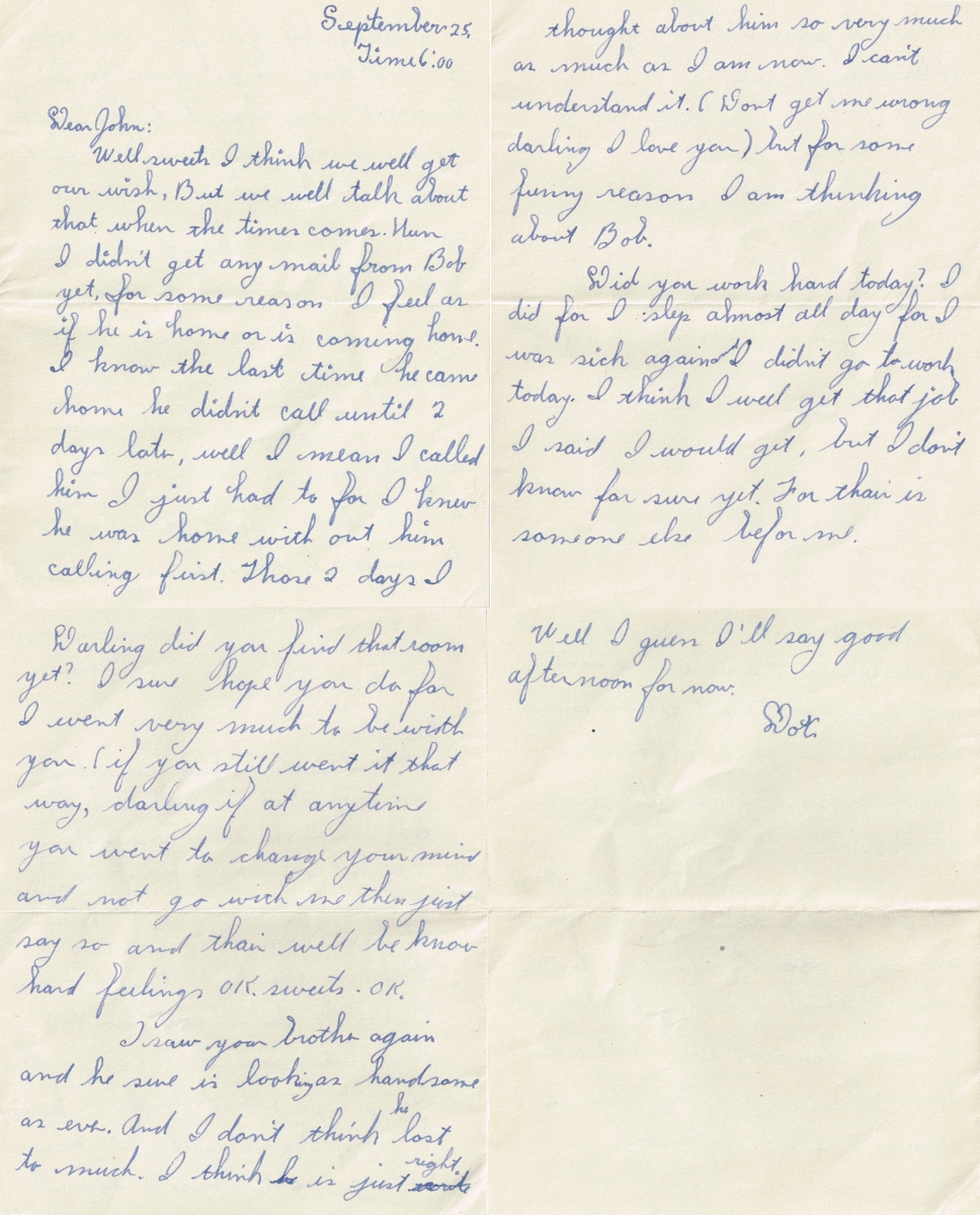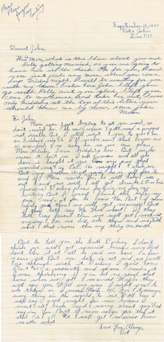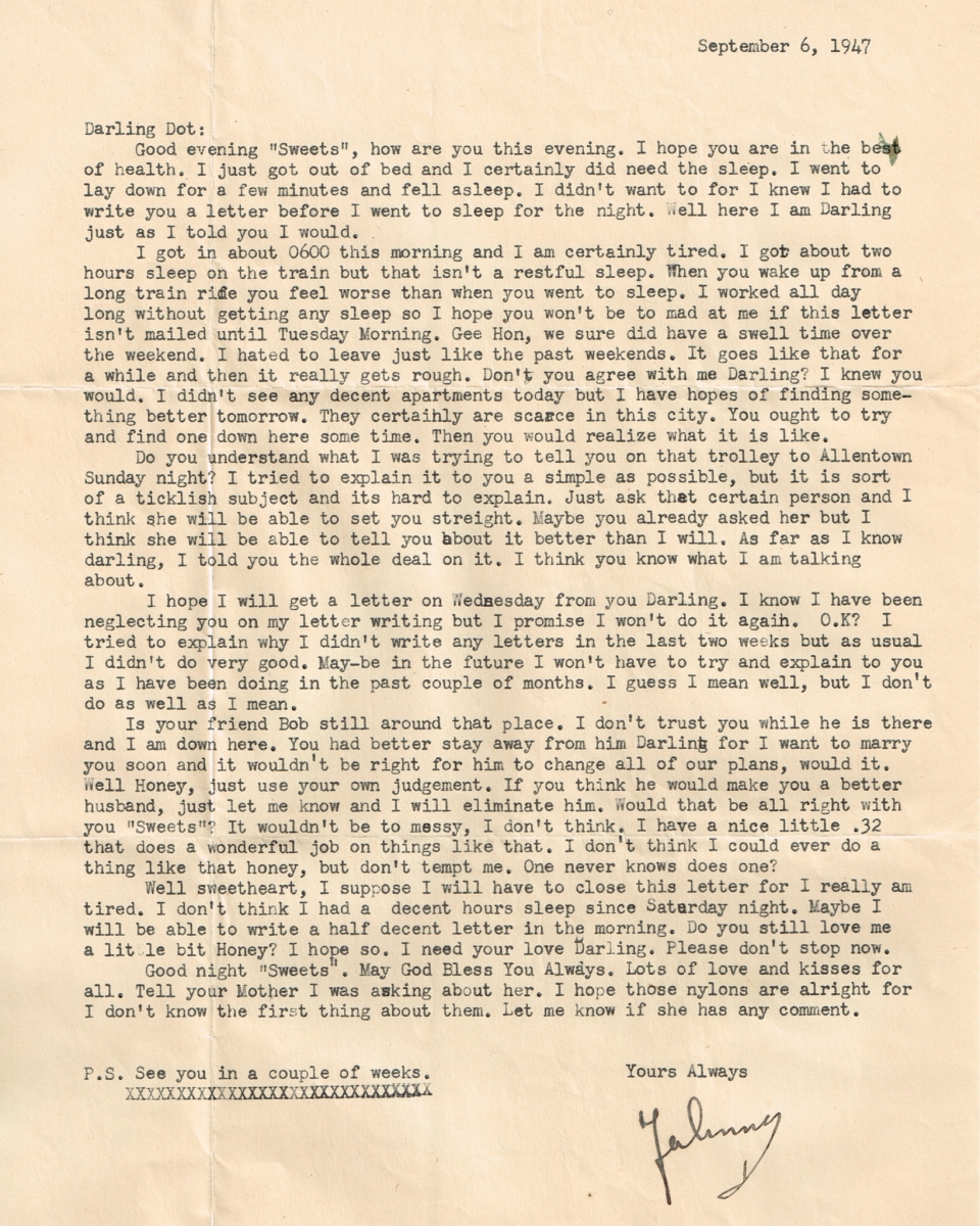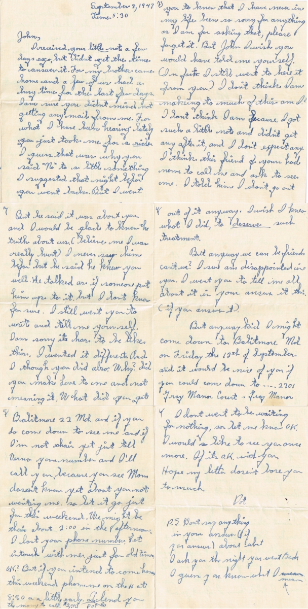 Letters Among the pile of old photo albums I found a trove of letters between Mom and Pop, written when he was in the service. Some of these are absolute gold. Pops Letters » Letters 47-09 Related Images: