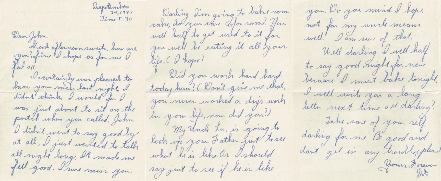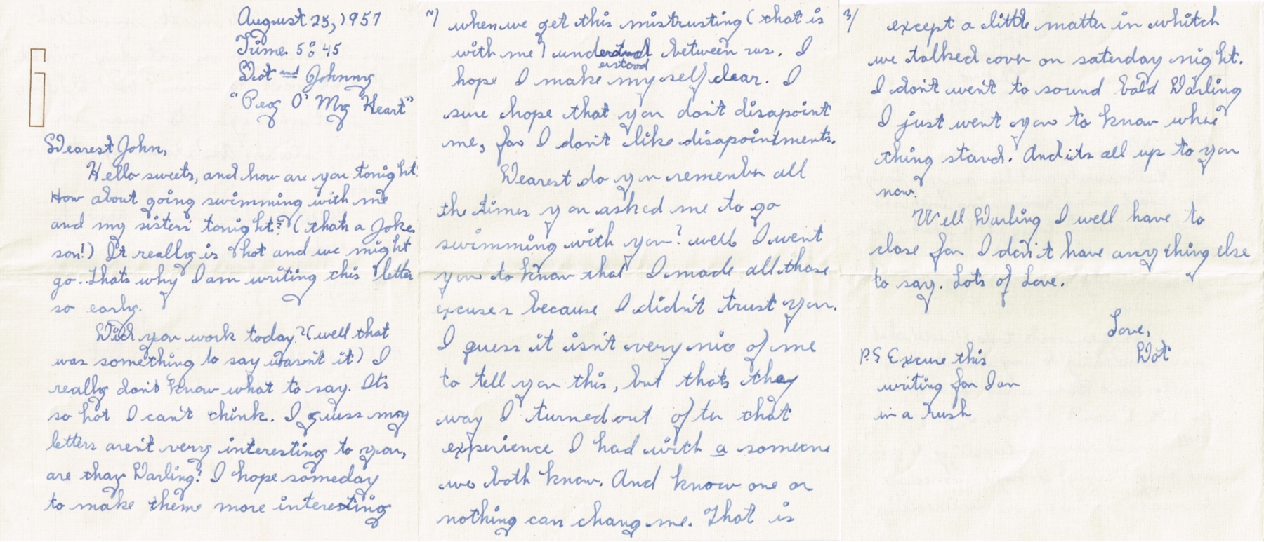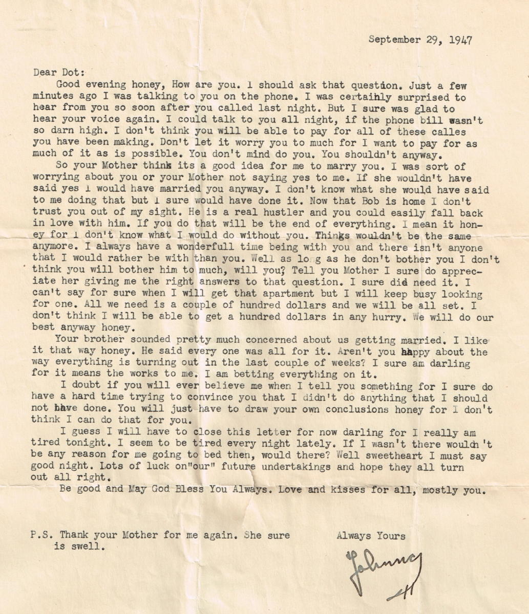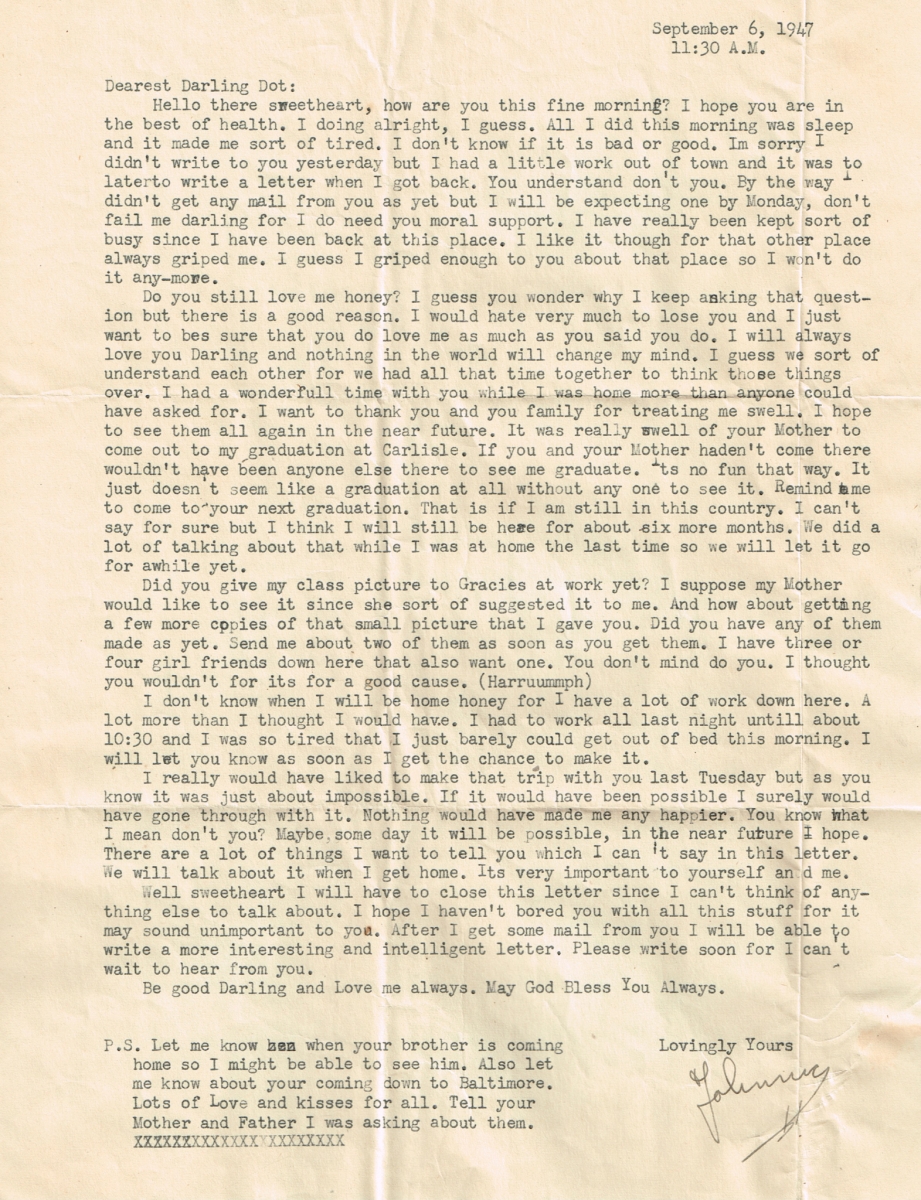 Letters Among the pile of old photo albums I found a trove of letters between Mom and Pop, written when he was in the service. Some of these are absolute gold. Pops Letters » Letters 47-09 Related Images: